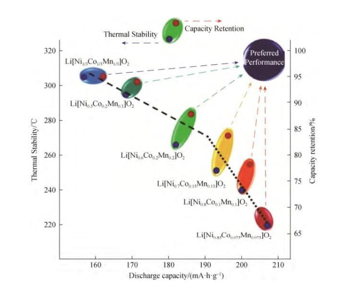三元材料鎳鈷錳(NCM),具有高比容量、長循環(huán)壽命、低毒和廉價的特點。此外,三種元素之間具有良好的協(xié)同效應,因此受到了廣泛的應用。
