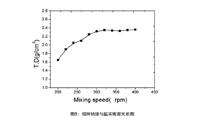 攪拌速度對晶體結晶過程影響較大,從而影響前驅(qū)體的振實密度。